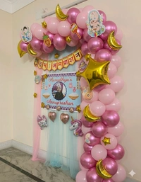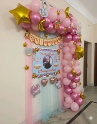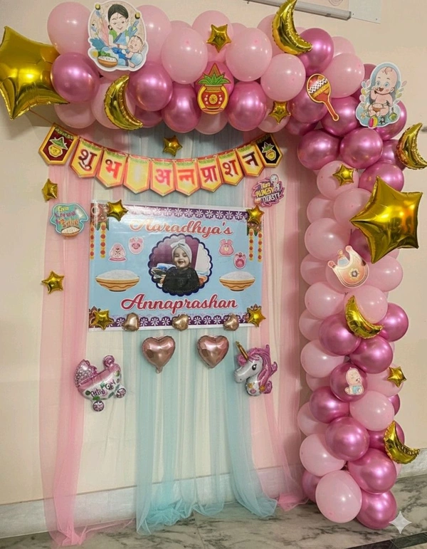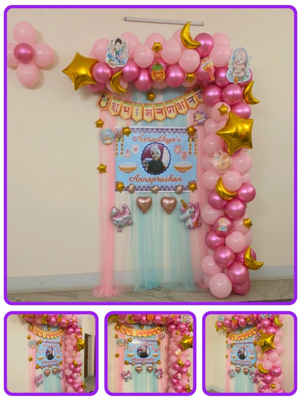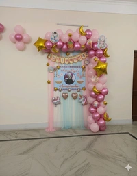 Our Annaprashan decorations blend traditional elements with modern aesthetics, using soft pastel themes, floral arrangements, balloons, fabric drapes, and customized backdrops. From classic ethnic décor with diyas, flowers, and motifs to contemporary themes with name boards and cute baby props, every detail is designed to reflect love, purity, and celebration.