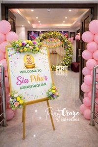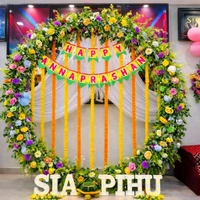 Our Annaprashan decorations blend traditional elements with modern aesthetics, using soft pastel themes, floral arrangements, balloons, fabric drapes, and customized backdrops. From classic ethnic décor with diyas, flowers, and motifs to contemporary themes with name boards and cute baby props, every detail is designed to reflect love, purity, and celebration.