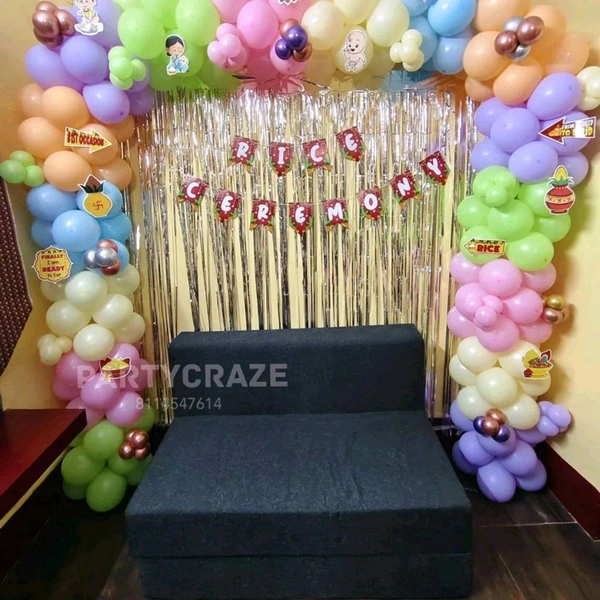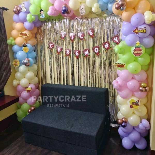 Our Annaprashan decorations blend traditional elements with modern aesthetics, using soft pastel themes, floral arrangements, balloons, fabric drapes, and customized backdrops. From classic ethnic décor with diyas, flowers, and motifs to contemporary themes with name boards and cute baby props, every detail is designed to reflect love, purity, and celebration.