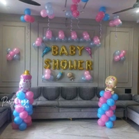 Balloon Decorations: The most popular element with themed arches, garlands, bouquets, and pastel-coloured designs to match boy/girl or neutral themes. These create a joyful ambience for the venue.
