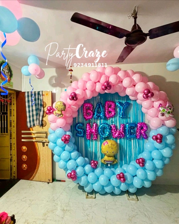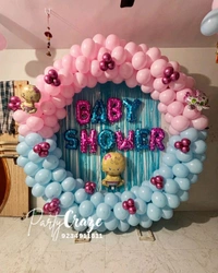 We provide complete baby shower decoration services including balloon decoration, theme décor, backdrop setup, welcome boards, table décor, and customized color themes.