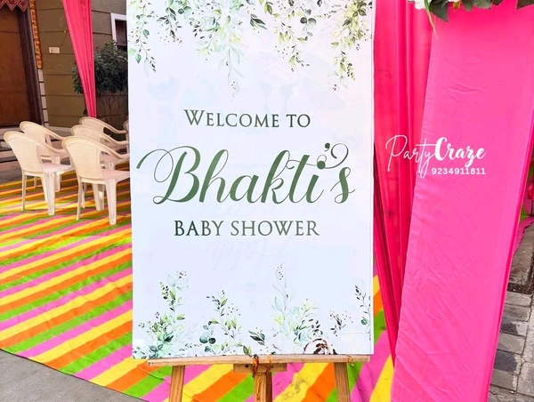 We provide complete baby shower decoration services including balloon decoration, theme décor, backdrop setup, welcome boards, table décor, and customized color themes.