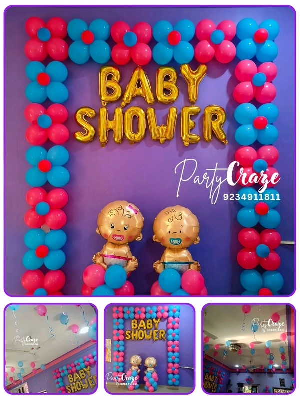 We provide complete baby shower decoration services including balloon decoration, theme décor, backdrop setup, welcome boards, table décor, and customized color themes.