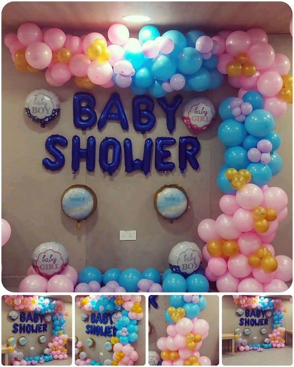We provide complete baby shower decoration services including balloon decoration, theme décor, backdrop setup, welcome boards, table décor, and customized color themes.