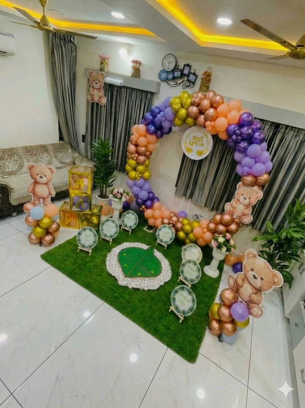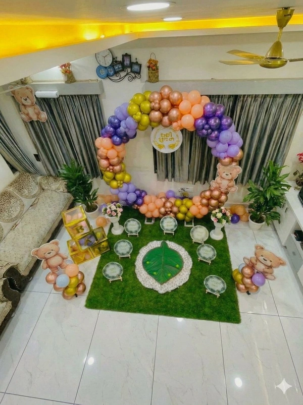 Chhatthi Ceremony decoration involves beautifying the space for the newborn’s sixth-day ceremony using balloons, backdrops, lights, name boards, and traditional decorative elements to create a warm and celebratory environment.