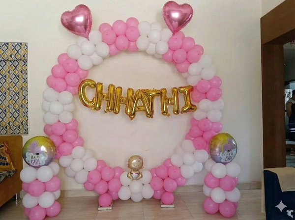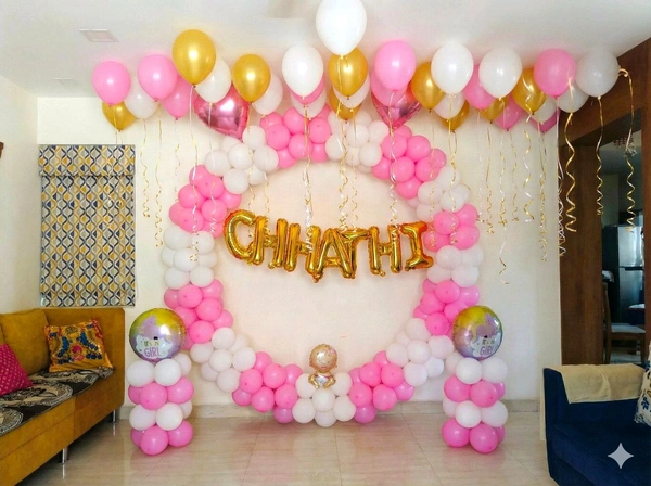 Chhatthi Ceremony decoration involves beautifying the space for the newborn’s sixth-day ceremony using balloons, backdrops, lights, name boards, and traditional decorative elements to create a warm and celebratory environment.