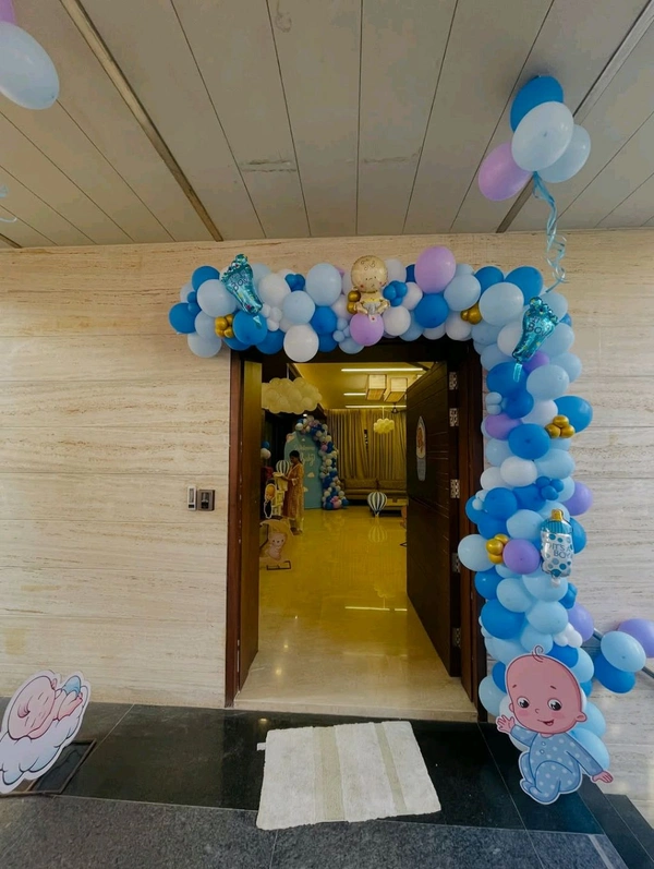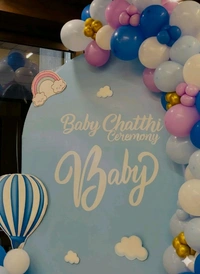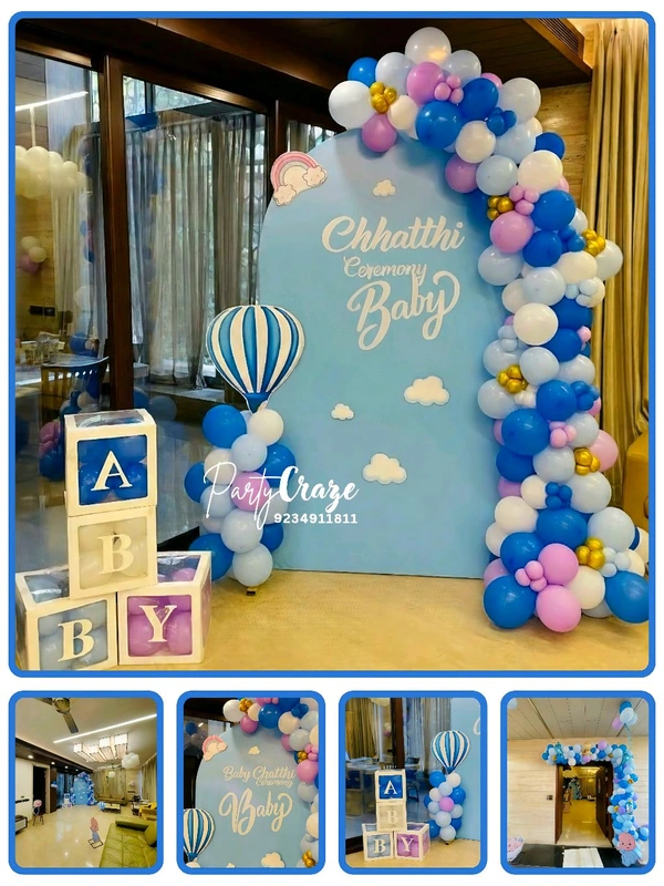 Chhatthi Ceremony decoration involves beautifying the space for the newborn’s sixth-day ceremony using balloons, backdrops, lights, name boards, and traditional decorative elements to create a warm and celebratory environment.