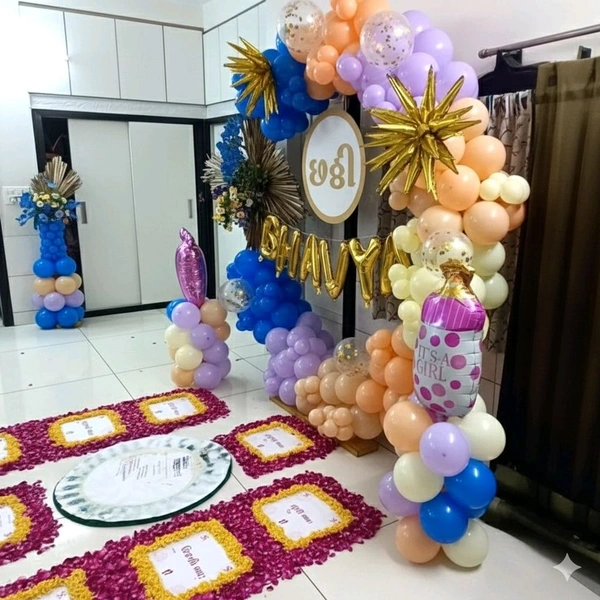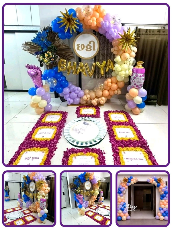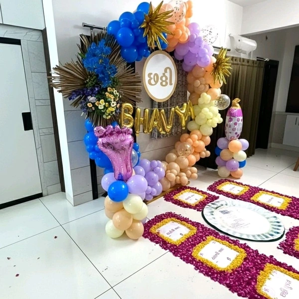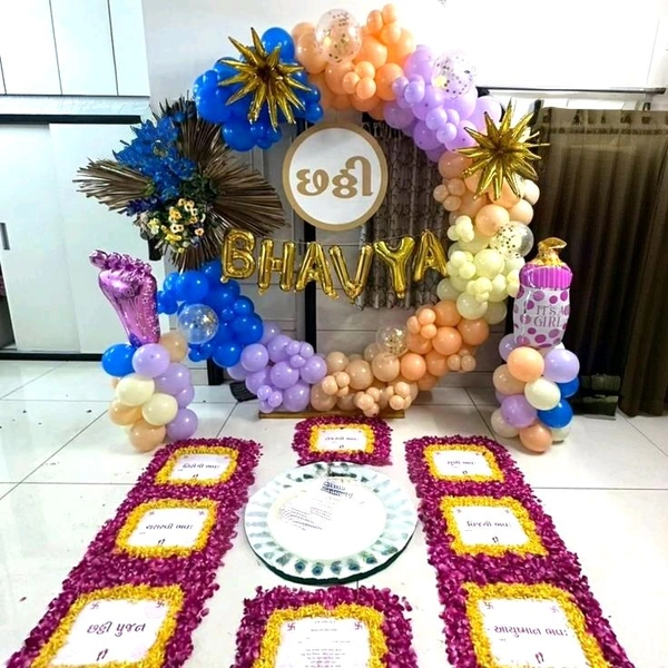 Chhatthi Ceremony decoration involves beautifying the space for the newborn’s sixth-day ceremony using balloons, backdrops, lights, name boards, and traditional decorative elements to create a warm and celebratory environment.