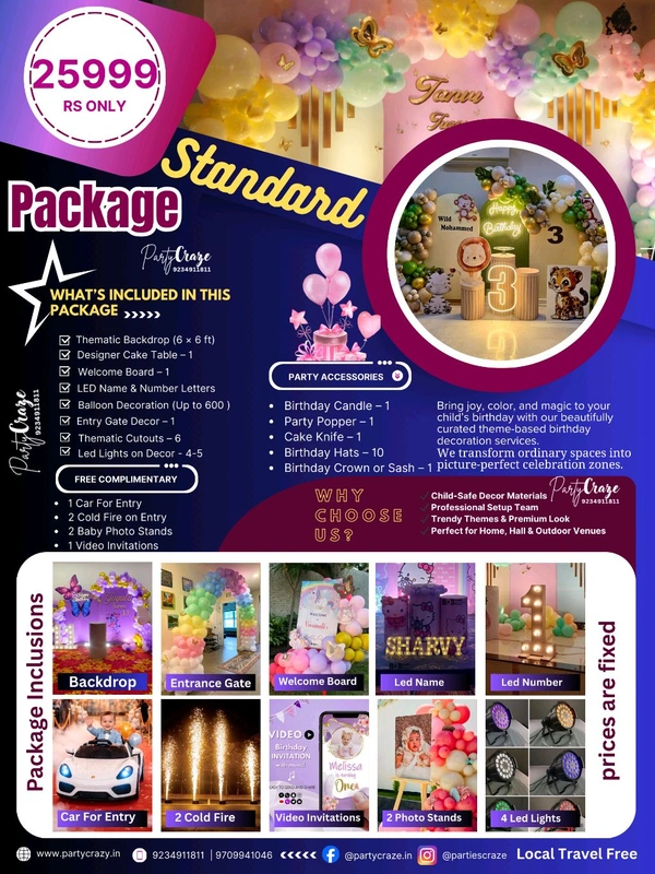 This package is ideal for creating a colorful, fun-filled atmosphere with professional-quality decorations, perfect lighting, and exciting entry moments for your little one.