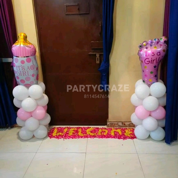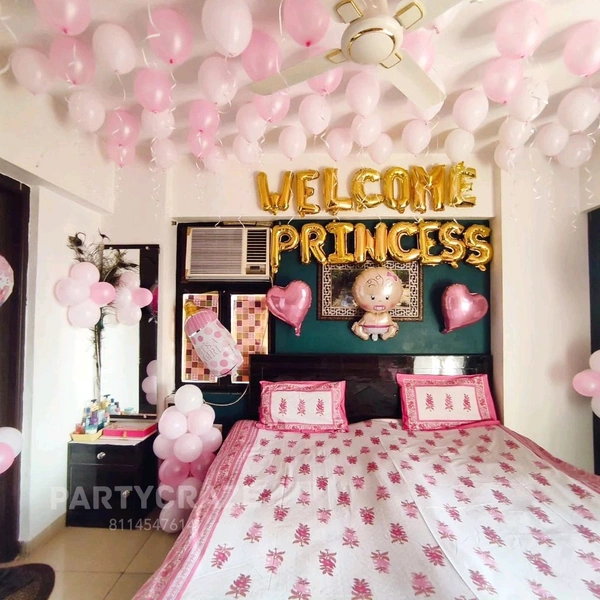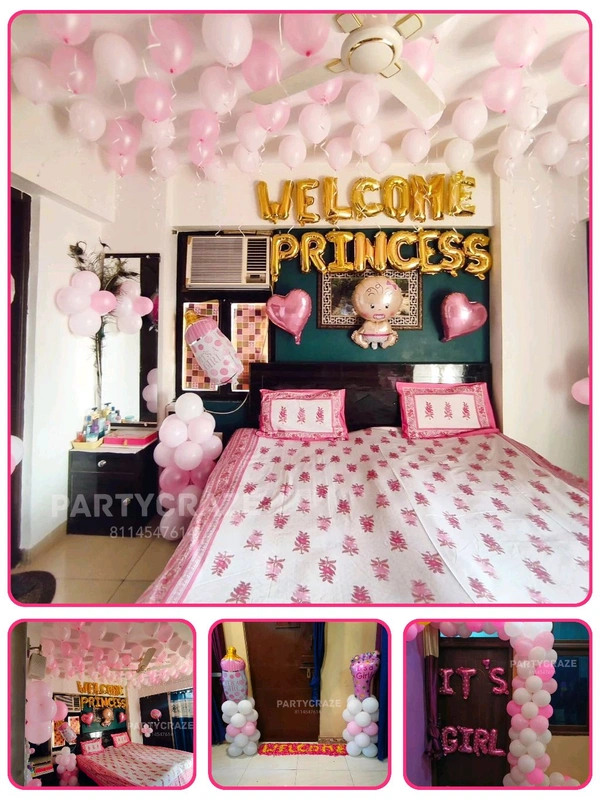 Our Baby Welcome Decoration typically includes themed balloon décor, welcome boards, baby props, ribbons, and customized elements. The final setup depends on the package you choose and your customization preferences.