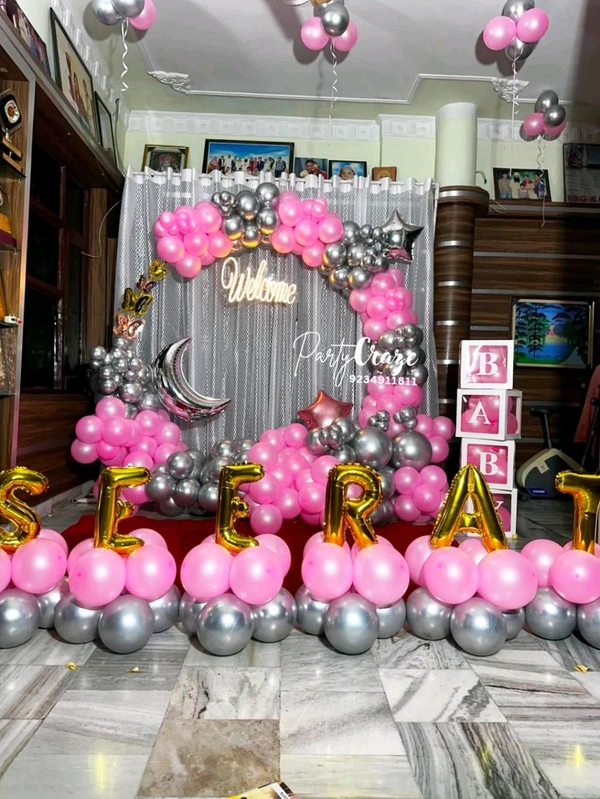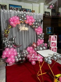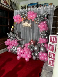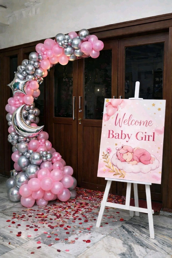 Our Baby Welcome Decoration typically includes themed balloon décor, welcome boards, baby props, ribbons, and customized elements. The final setup depends on the package you choose and your customization preferences.