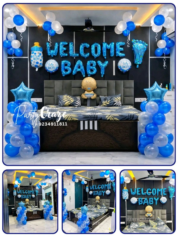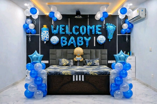 Our Baby Welcome Decoration typically includes themed balloon décor, welcome boards, baby props, ribbons, and customized elements. The final setup depends on the package you choose and your customization preferences.