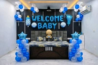 Our setup features a charming blend of pastel balloons, baby-themed props, welcome boards, ribbons, and soft décor elements that beautifully express love and happiness. Whether you’re welcoming a baby boy, baby girl, or planning a gender-neutral theme, we customize every detail to match your vision.