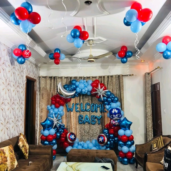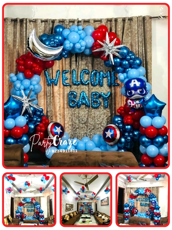Our Baby Welcome Decoration typically includes themed balloon décor, welcome boards, baby props, ribbons, and customized elements. The final setup depends on the package you choose and your customization preferences.