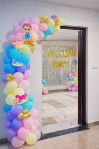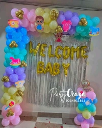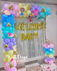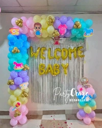 Our Baby Welcome Decoration typically includes themed balloon décor, welcome boards, baby props, ribbons, and customized elements. The final setup depends on the package you choose and your customization preferences.
