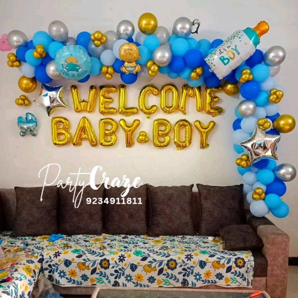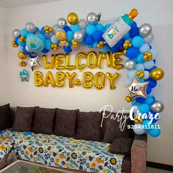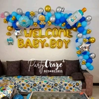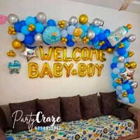 Our Baby Welcome Decoration typically includes themed balloon décor, welcome boards, baby props, ribbons, and customized elements. The final setup depends on the package you choose and your customization preferences.